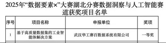 近日,由國(guó)家數(shù)據(jù)局、湖北省人民政府指導(dǎo),湖北省數(shù)據(jù)局會(huì)同14個(gè)省直部門(mén)聯(lián)合主辦的2025年“數(shù)據(jù)要素x”大賽湖北分賽決賽評(píng)審工作收官。華工賽百繼2024年在 “數(shù)據(jù)要素×” 大賽湖北分賽工業(yè)制造賽道榮獲一等獎(jiǎng)后,此次憑借“基于高質(zhì)量數(shù)據(jù)集的工業(yè)智能體解決方案”,再度斬獲2025年“數(shù)據(jù)要素x” 大賽湖北分賽 “數(shù)據(jù)洞察與人工智能” 賽道一等獎(jiǎng)。