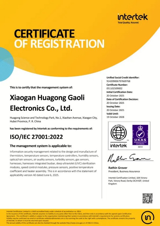 華工科技核心子公司華工高理繼2024年通過TISAX認證后,近日再添ISO 27001:2022信息安全管理體系認證,成為傳感器行業(yè)內首家同時斬獲這兩大權威認證的企業(yè),標志著華工高理的信息安全管理體系不僅滿足汽車行業(yè)的嚴苛要求,更具備了服務全球各領域客戶的通用能力。